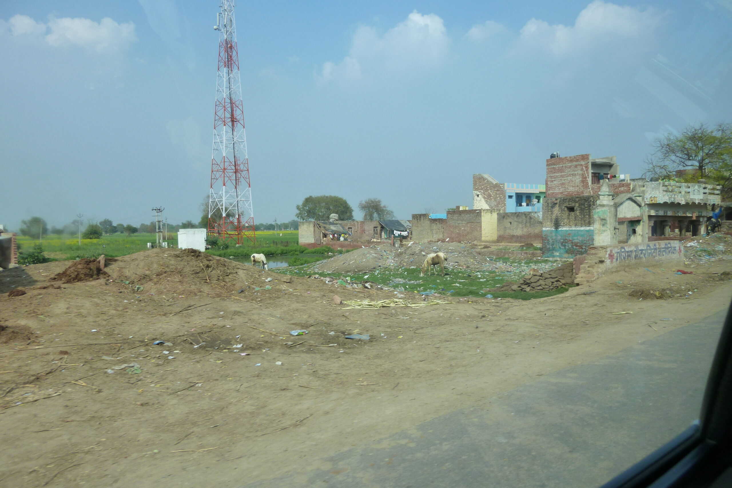 Nach dem Mittagessen geht es nun auf die Autobahn. Wir fahren endlose Stunden durch eine ständig wechselnde Landschaft. Felder mit sattgrünem Gras und vereinzelten Bauernhäusern wechseln mit kargen Steppen, auf denen halb verhungerte Ziegen grasen. Und überall Autos, überfüllte Busse, LKW, Tuktuks, Radfahrer, Fußgänger, Hunde und Kühe – ja, selbst auf dem Highway! Einige Bilder sind aus dem fahrenden Auto heraus gemacht, deswegen ist die Qualität nicht so besonders, aber ich denke, man erkennt das Gewusel.