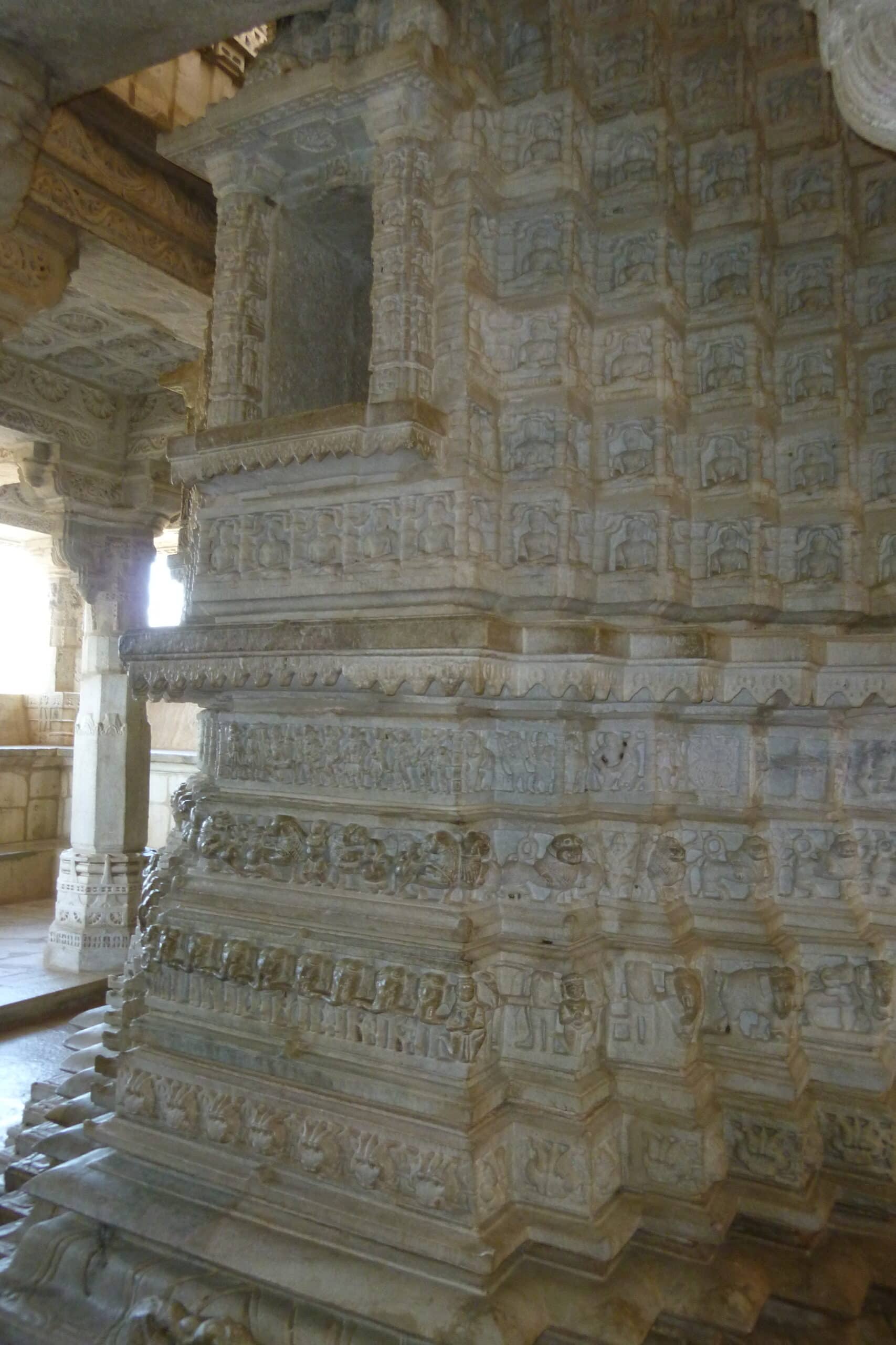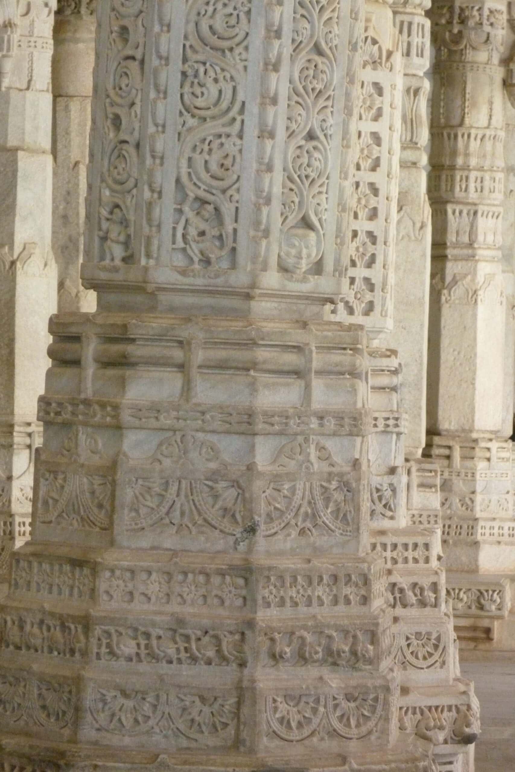 Alle Säulen, bis auf eine, sind perfekt. Eine einzige Säule ist schief – und das mit Absicht. Hindu glauben, dass das Böse auf alles Perfekte eifersüchtig und neidisch ist. Deswegen haben die Schöpfer ihren Kunstwerken kleine „Fehler“ zugefügt, um so das böse Auge abzuwenden. (Aus dem gleichen Grund malen Mütter ihren Neugeborenen mit Kajal einen Punkt auf die Wange oder an den Hals, um so das Böse davon zu überzeugen, dass ihr Kind nicht perfekt ist.)
