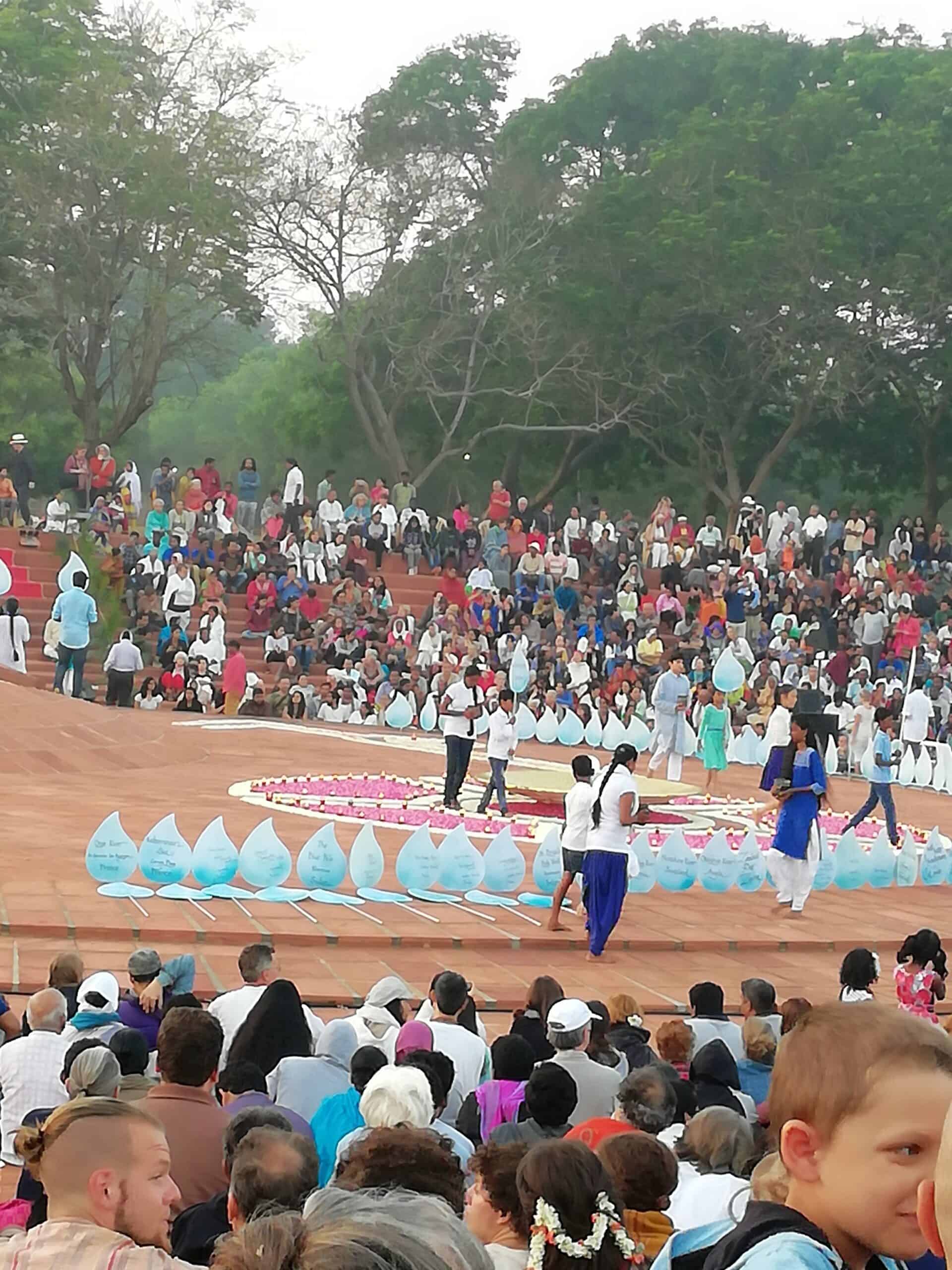 Und 50 Jahre später, 2018, sollte es eine Wasserzeremonie geben, bei der das aus aller Welt gespendete Wasser zusammengegossen werden sollte als Zeichen für die Verbundenheit der Menschheit und als Erinnerung an die Grundsteinlegung Aurovilles.