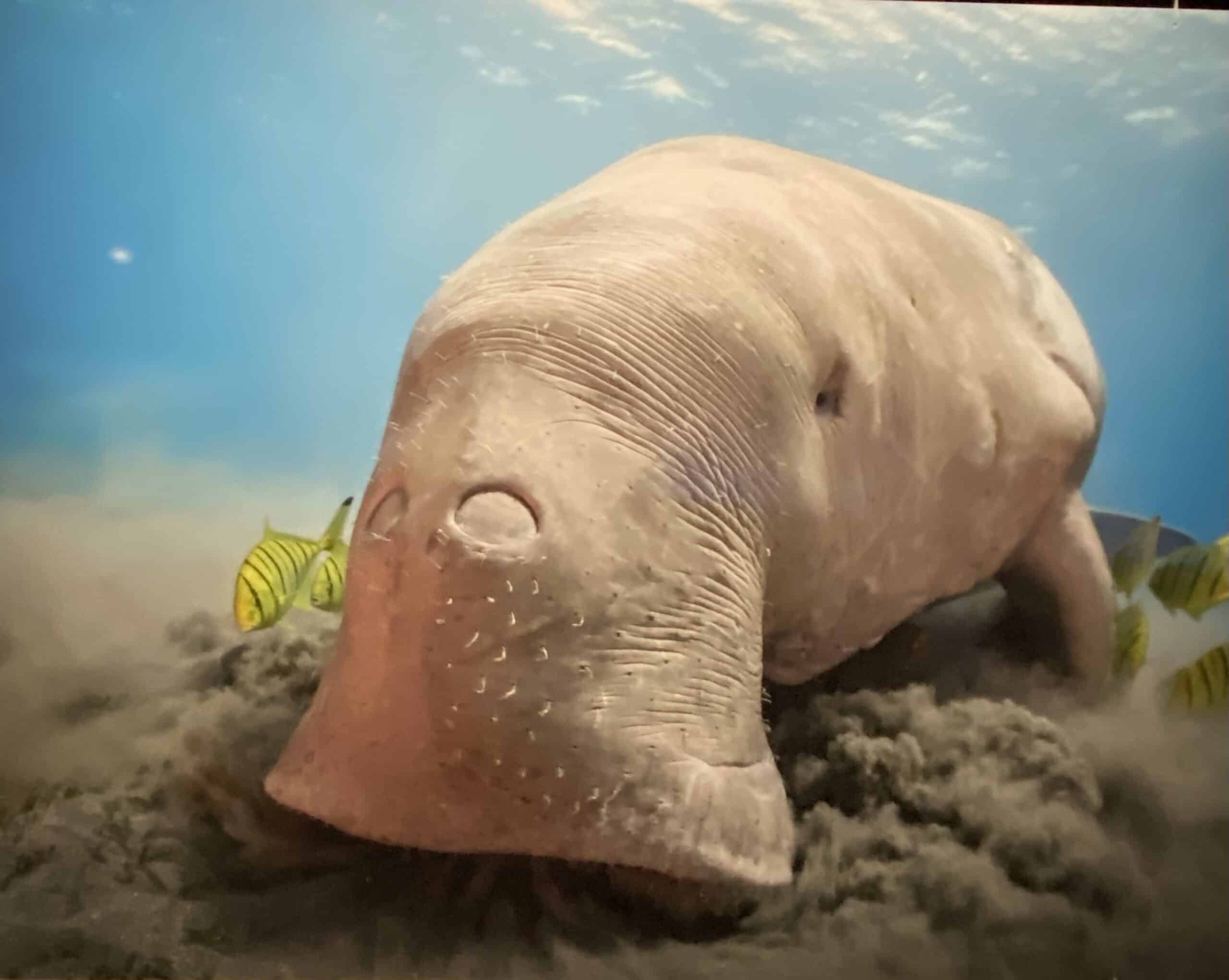 Hübsch ist sie nicht, diese Haushaltshilfe des Meeres, die wie ein Staubsauger über den Meeresboden fegt. Es ist ein Dugong, eine Seekuh.