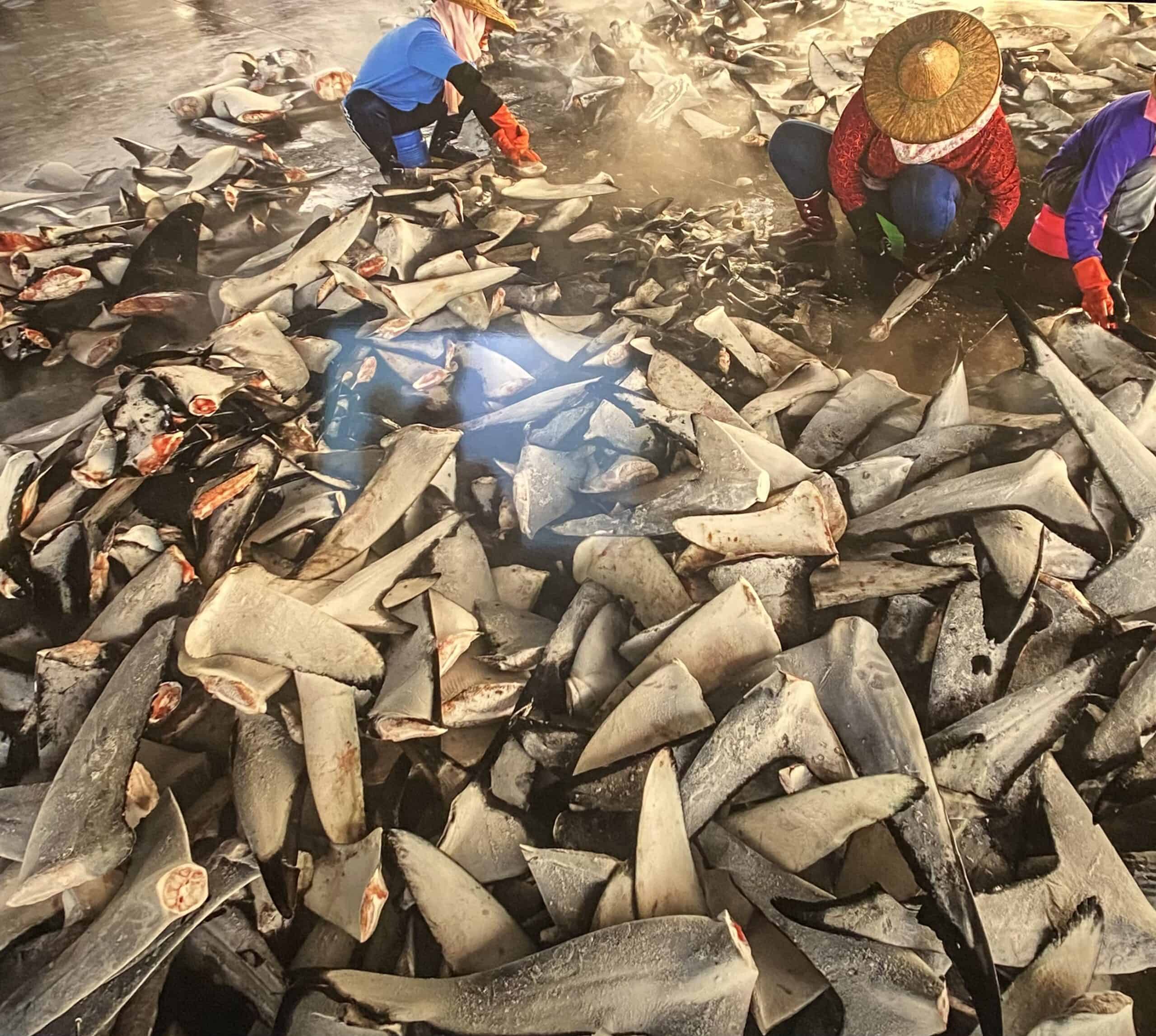 Noch schlimmer ist das nächste Foto: Tausende gefrorene Haifischflossen auf dem Fischmarkt in Taiwan. Rund 73 Millionen Haie werden jährlich allein wegen ihrer Flossen getötet. Und damit sich der Fang für die Fischer lohnt (und die Boote nicht das ganze Gewicht der Haie tragen müssen) , werden die Flossen direkt abgeschnitten und die lebenden Tiere wieder ins Meer geworfen, wo sie langsam und qualvoll verenden. Geht es noch perverser? Und alles im Namen des Profits.