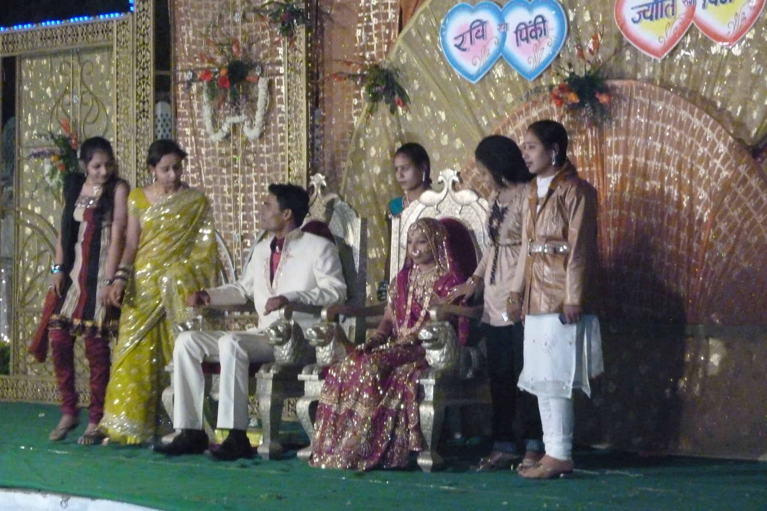 Nach unserem Mahl setzt unser Guide uns wieder in ein Tuktuk und trägt dem Fahrer auf, an einem Hochzeitszug anzuhalten, damit wir Fotos machen können. Unser Fahrer fährt uns aber direkt zu einem Hochzeitsplatz und fordert uns auf, uns unter die Feiernden zu mischen. Wir fotografierten das Hochzeitspaar, aber der Aufforderung unseres Fahrers, uns zum Hochzeitspaar, das auf einer Bühne saß, zu gesellen, sind wir nicht nachgekommen. Wir hätten uns in unserer Kleidung auch völlig fehl am Platz gefühlt zwischen all den wunderschön gekleideten Menschen. Auch einige der Feiernden luden uns ein, an der Feier teilzunehmen, aber wir haben es vorgezogen, nach Hause zu fahren. Auf diese Situation waren wir einfach nicht vorbereitet. Wie wir später erfahren haben, hätten wir unbedingt dort bleiben sollen, denn für das Brautpaar wäre das eine besondere Segnung gewesen.